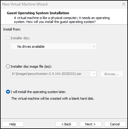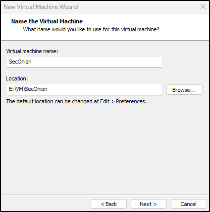 Enter the Virtual machine name (e.g., SecOnion) and choose where to save it.