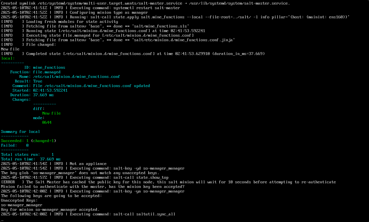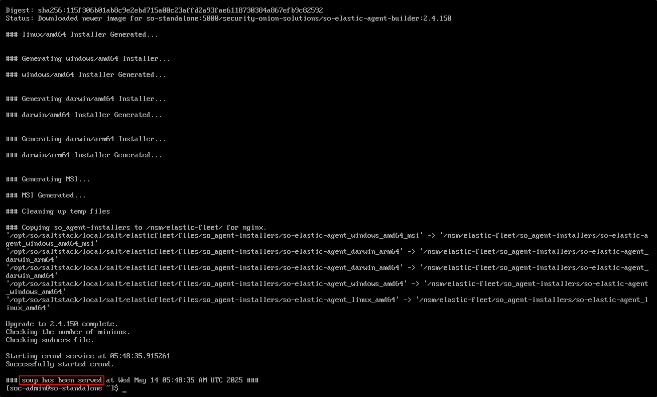 If you encounter an error, try installing the Elastic agent again. If the error persists, refer to the Security Onion documentation for troubleshooting.
