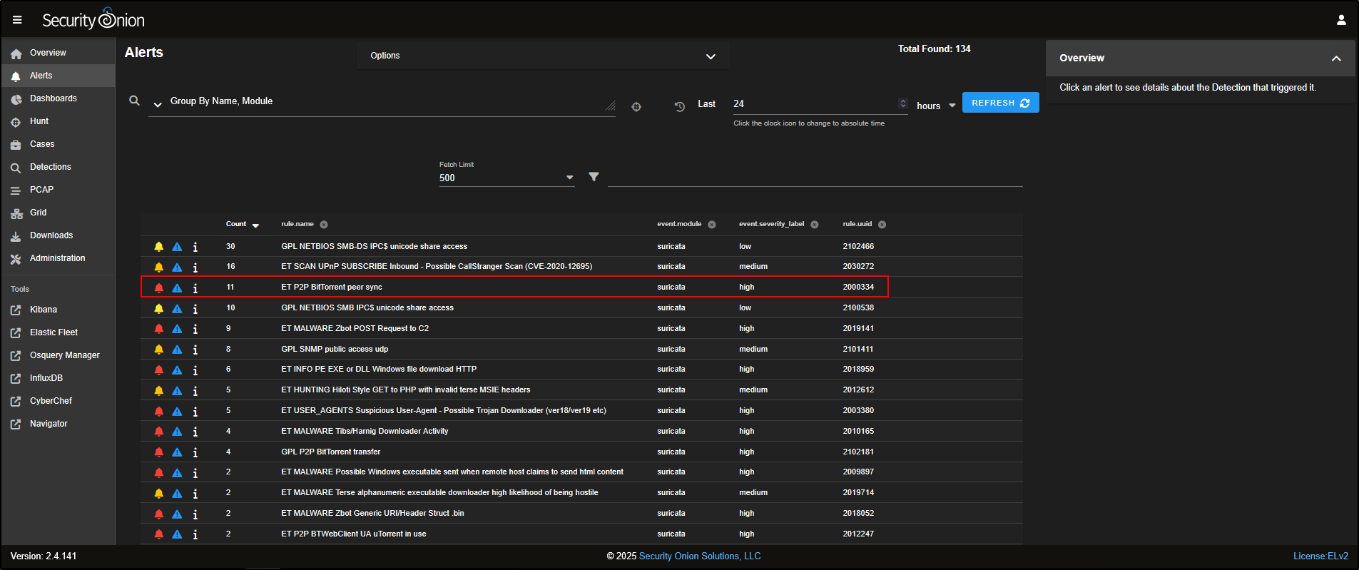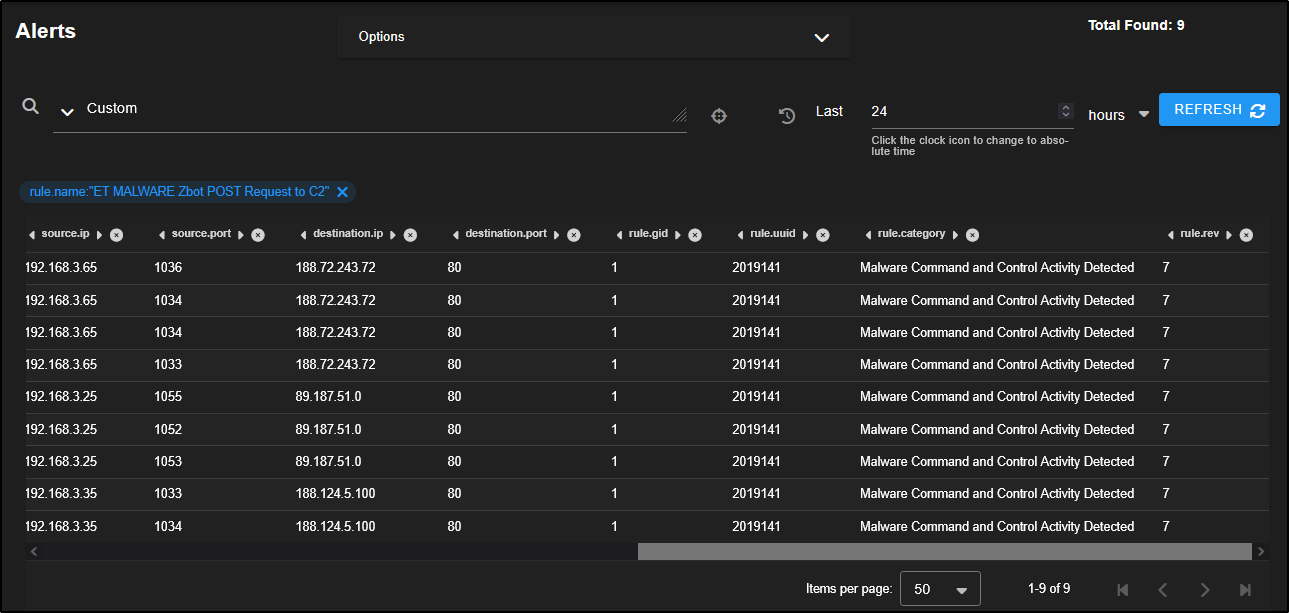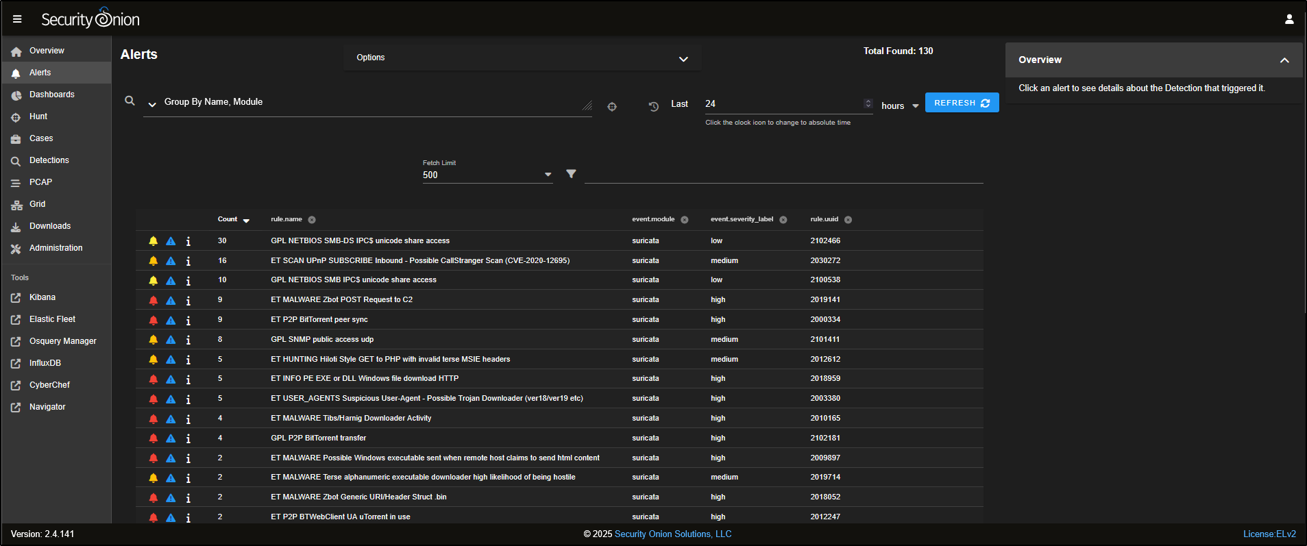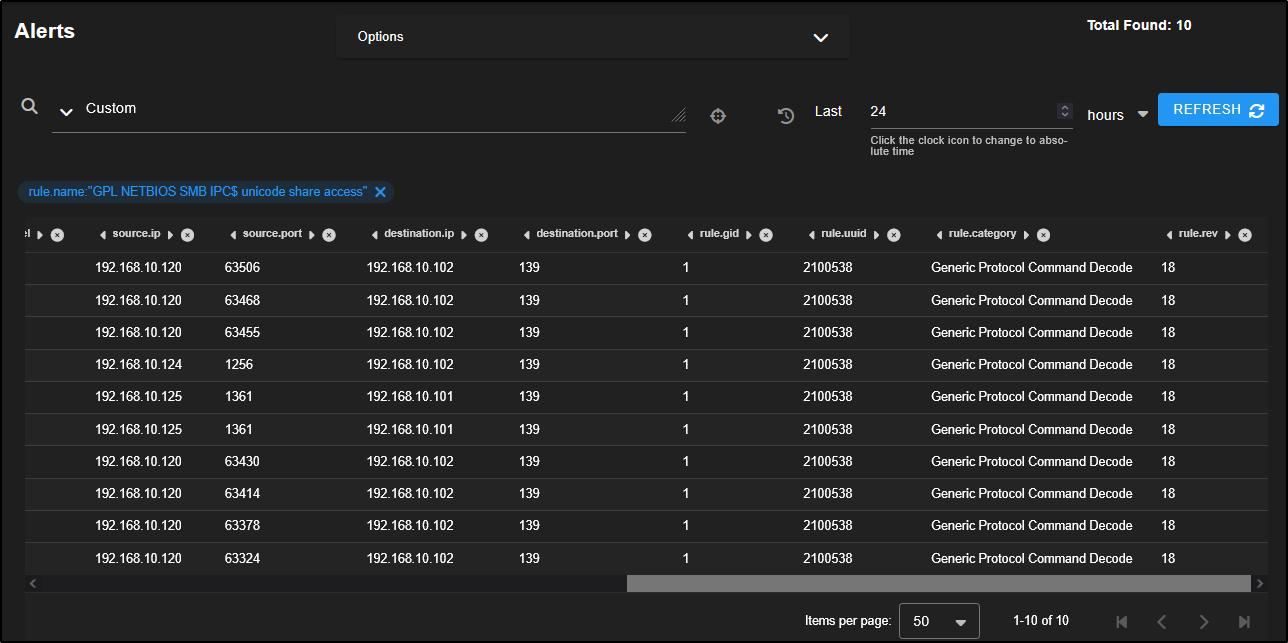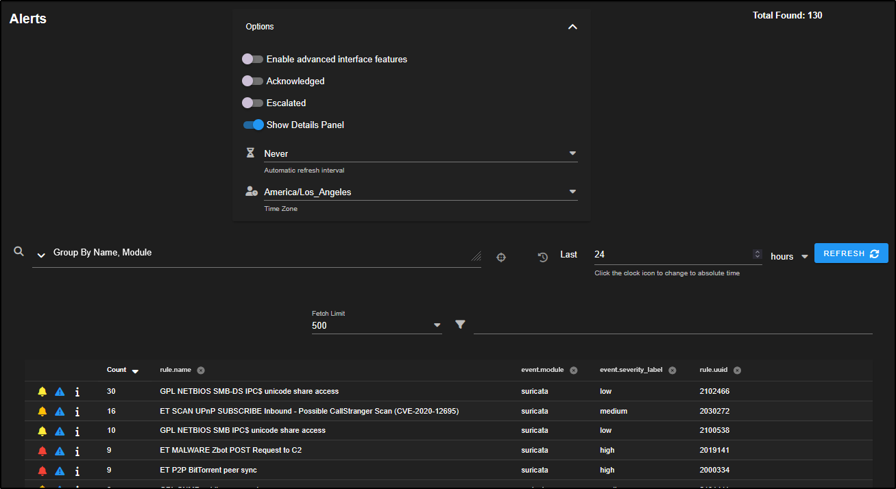 Head to the Alerts page in the SOC web interface. You should see an alert confirming that the rule successfully triggered based on this activity.