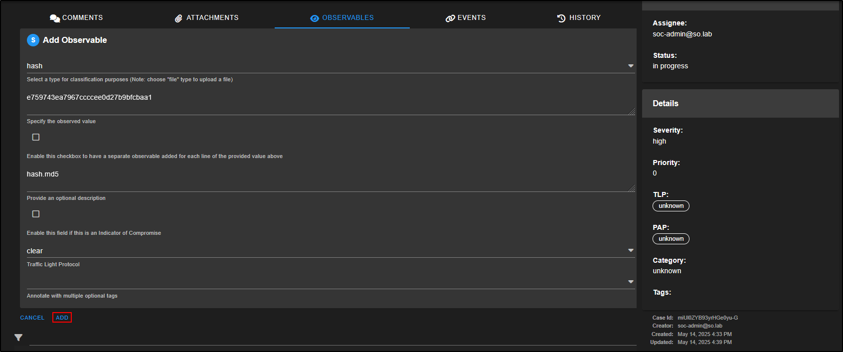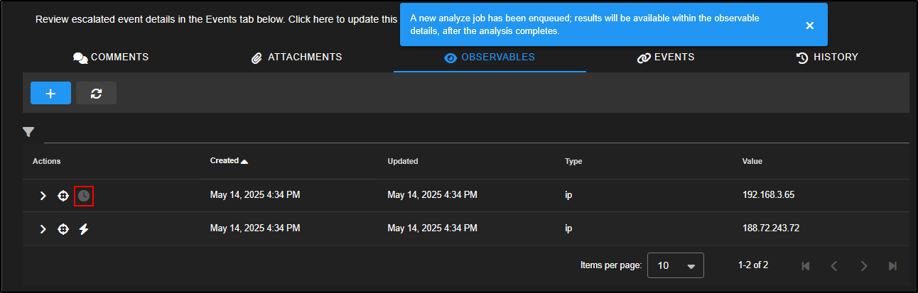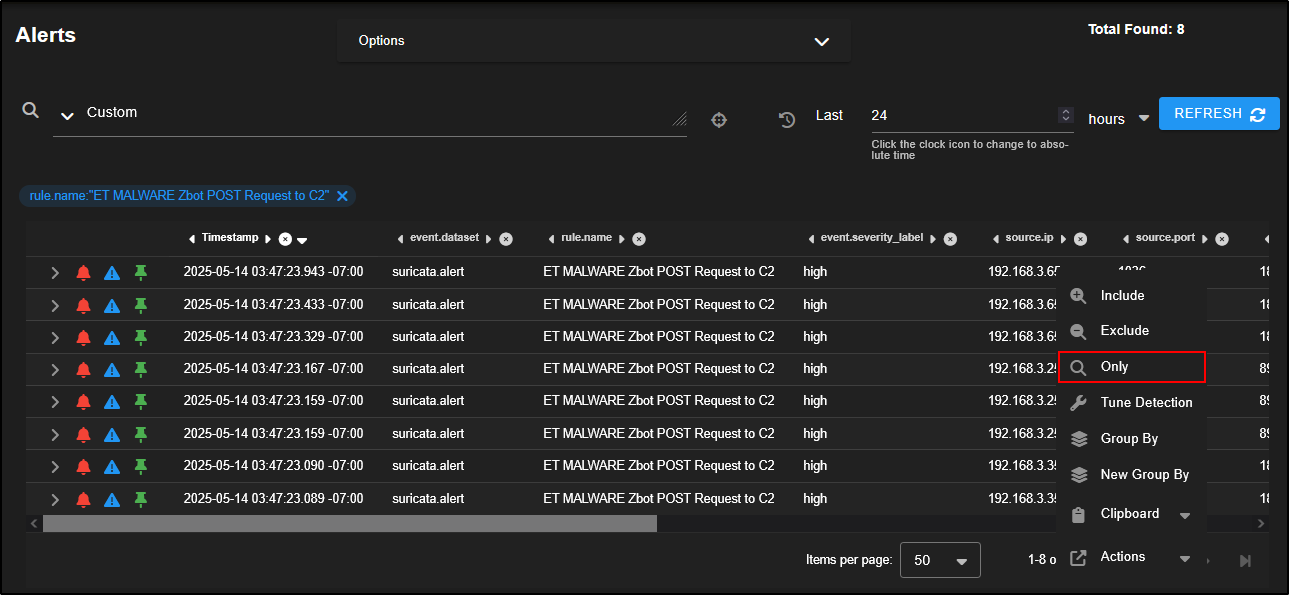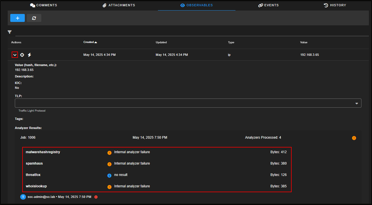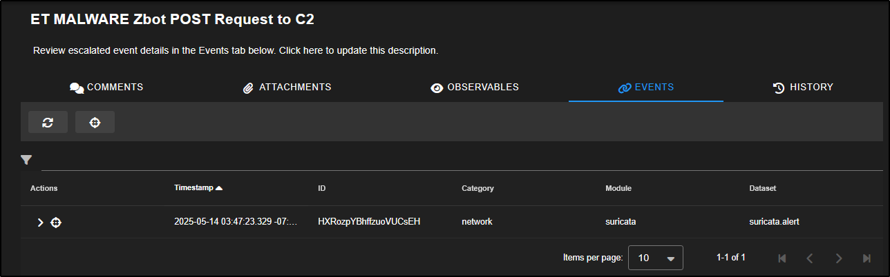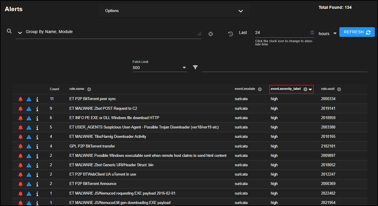 Head to the Alerts page in the SOC web interface. You should see an alert confirming that the rule successfully triggered based on this activity.