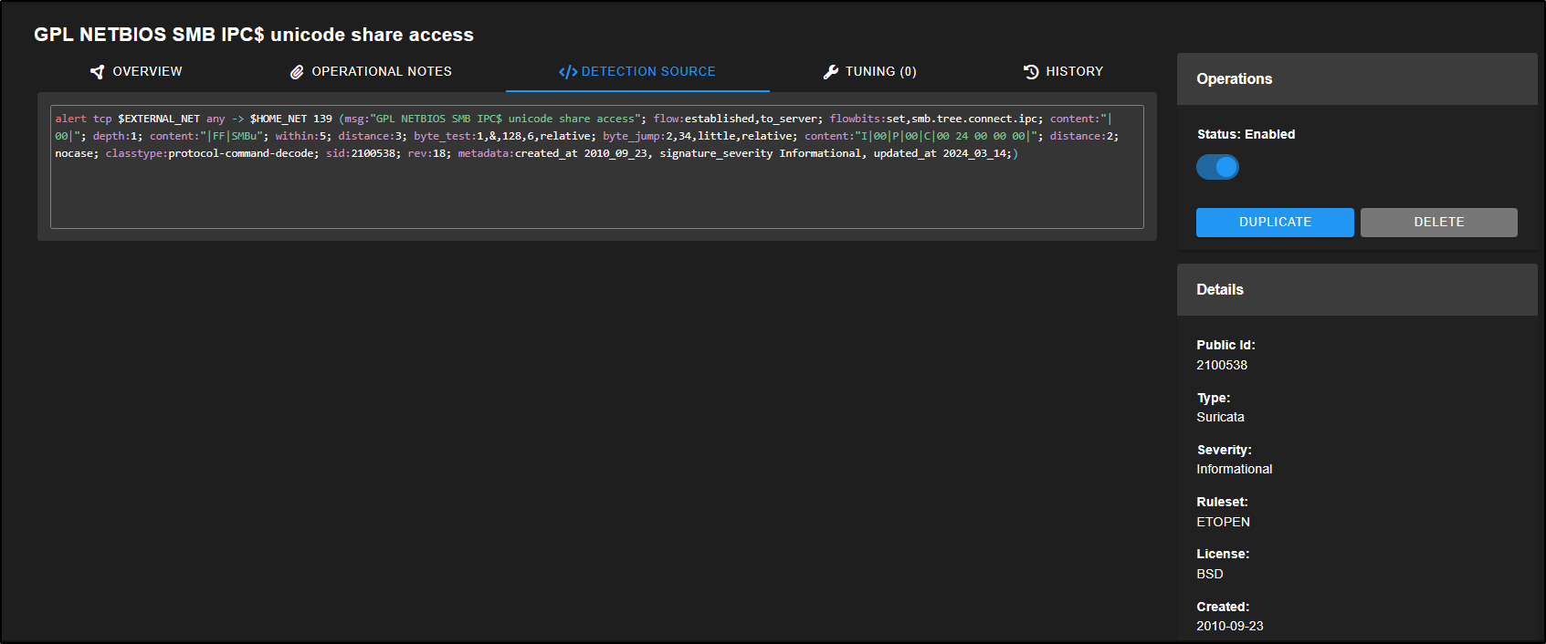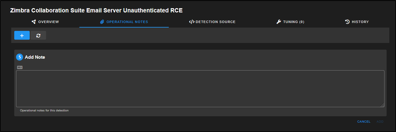The Operational Notes tab gives analysts a place to record notes about the rule, including any tuning they have applied and how effective the rule has been in their environment.