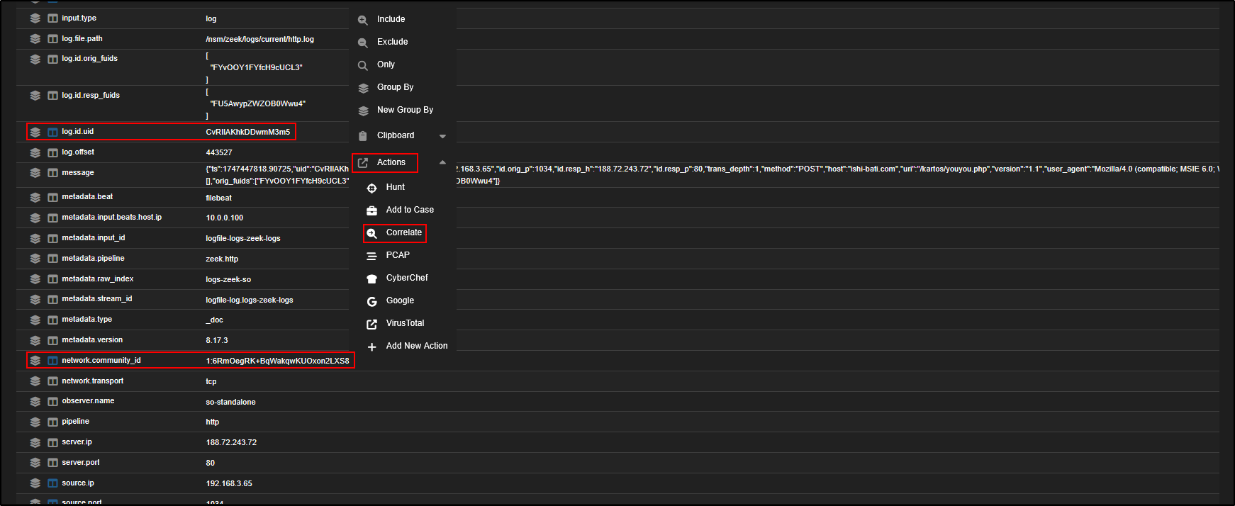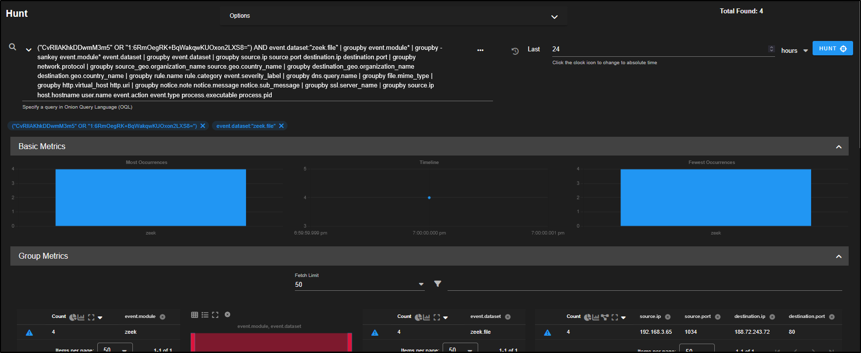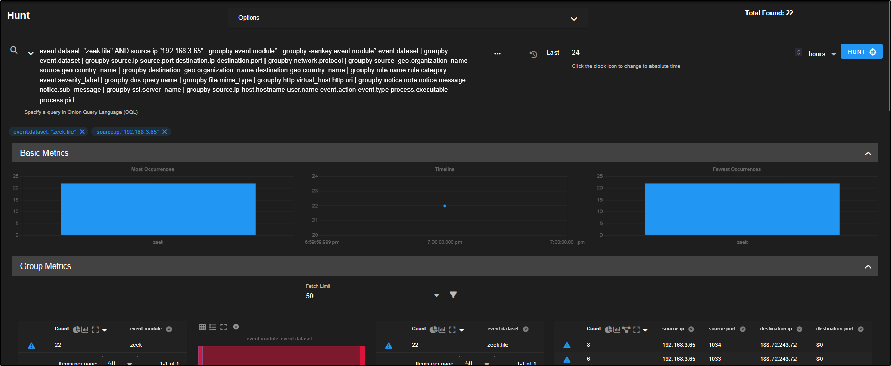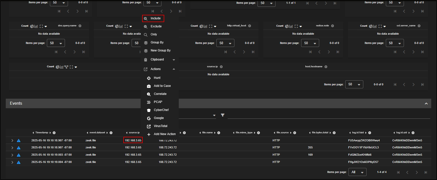 to prioritise entries with larger POST payloads. You should now see the same suspicious activity identified earlier in the Hunt interface, confirming consistency across both views.