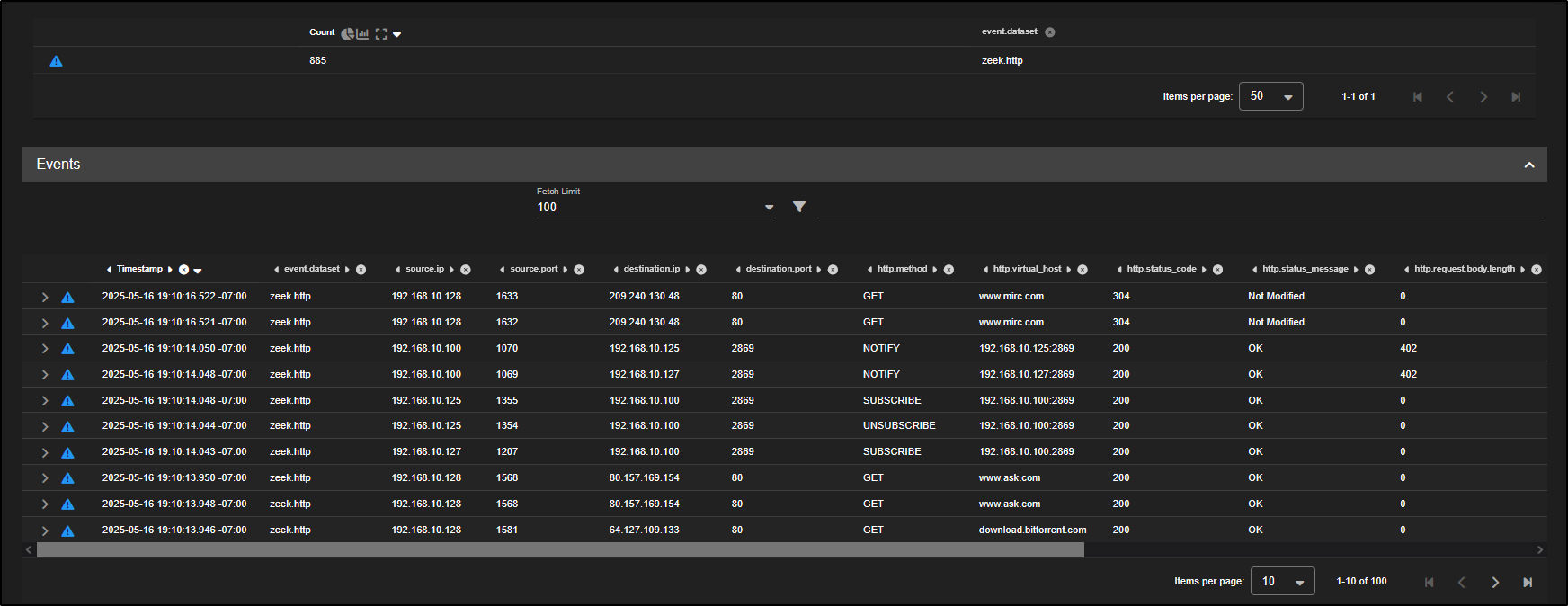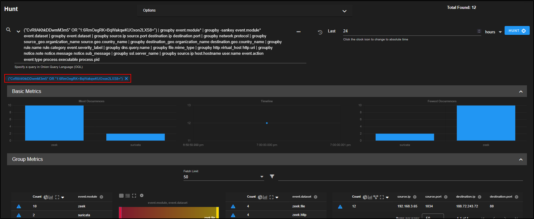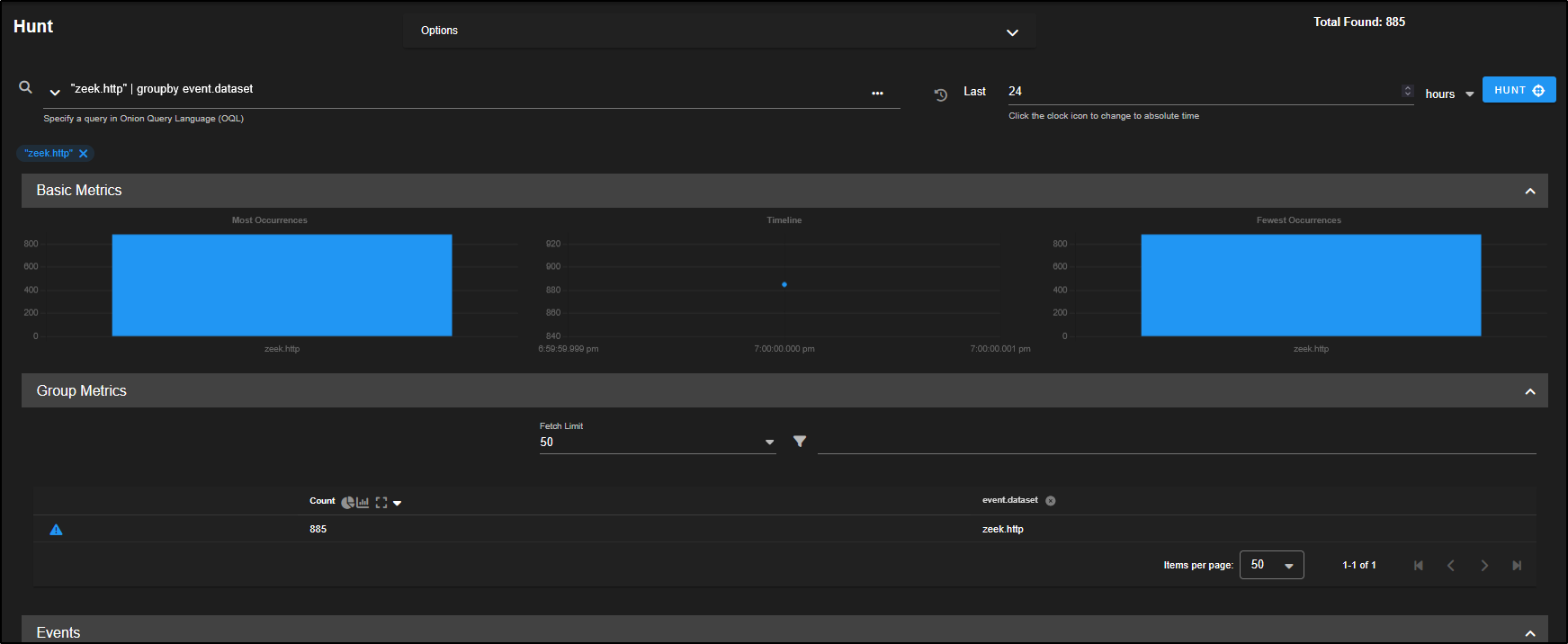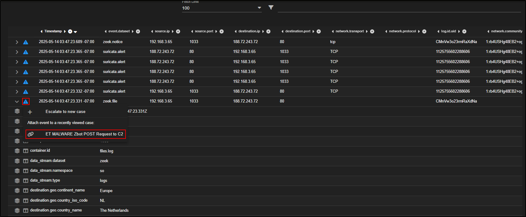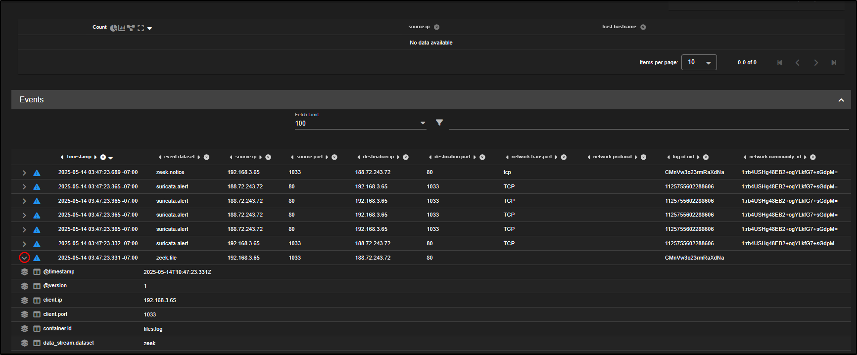 to prioritise entries with larger POST payloads. You should now see the same suspicious activity identified earlier in the Hunt interface, confirming consistency across both views.