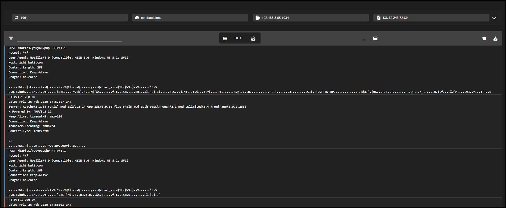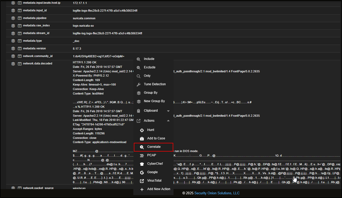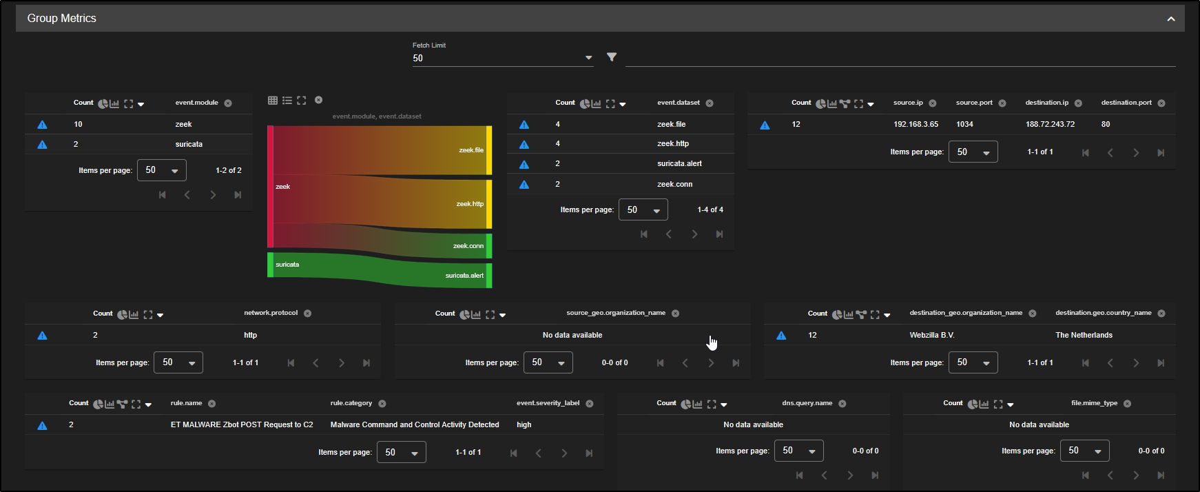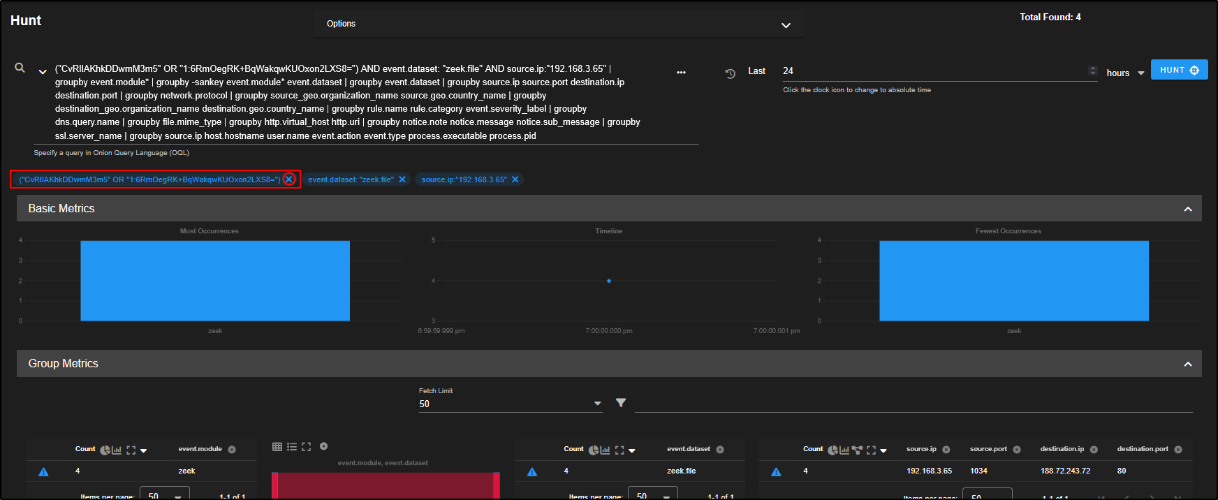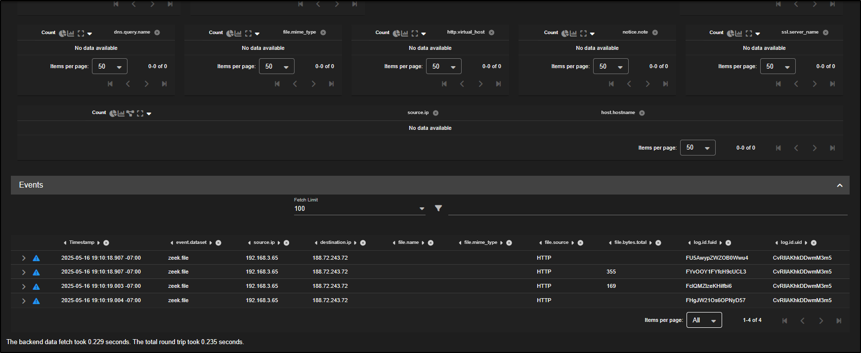 to prioritise entries with larger POST payloads. You should now see the same suspicious activity identified earlier in the Hunt interface, confirming consistency across both views.