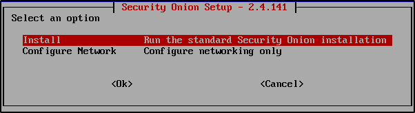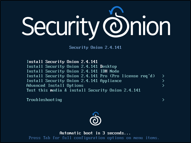 Power on the VM. When the menu appears, select Install Security Onion (top option).