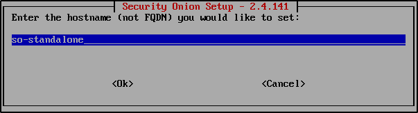 Give your system a hostname. This will identify your Security Onion node. For example: