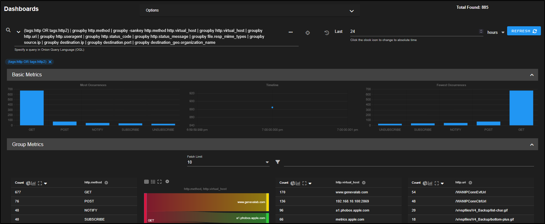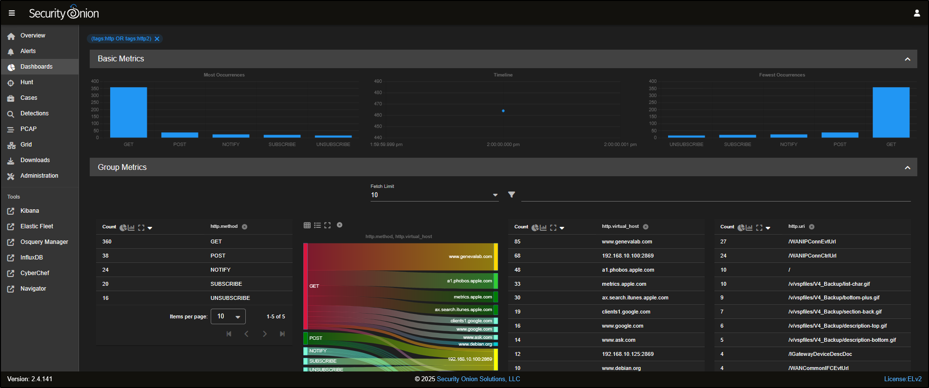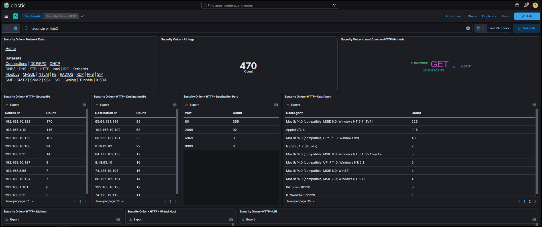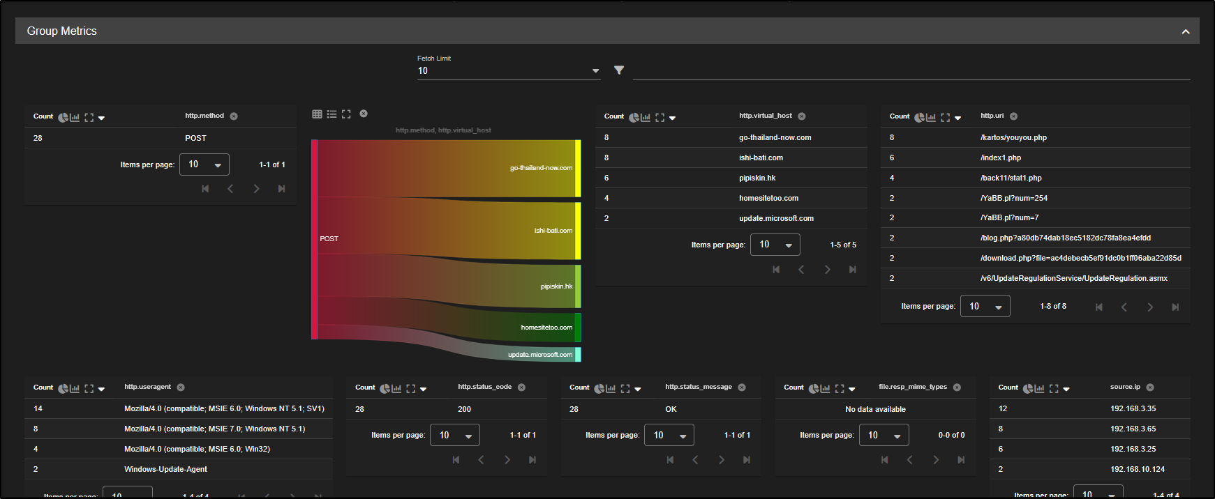 The dashboard now displays only HTTP POST requests, allowing you to focus your analysis on traffic that may indicate data uploads or command-and-control activity.