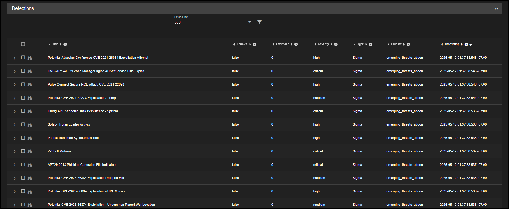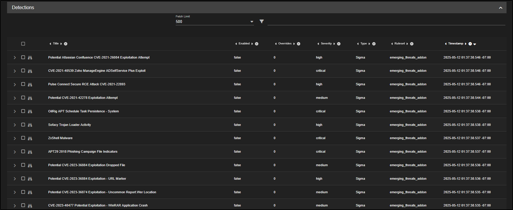 Most of the Sigma rules included with Security Onion are turned off by default. Each enabled rule runs an Elasticsearch query every few minutes, so enabling all of them could put heavy strain on the Grid and affect performance.