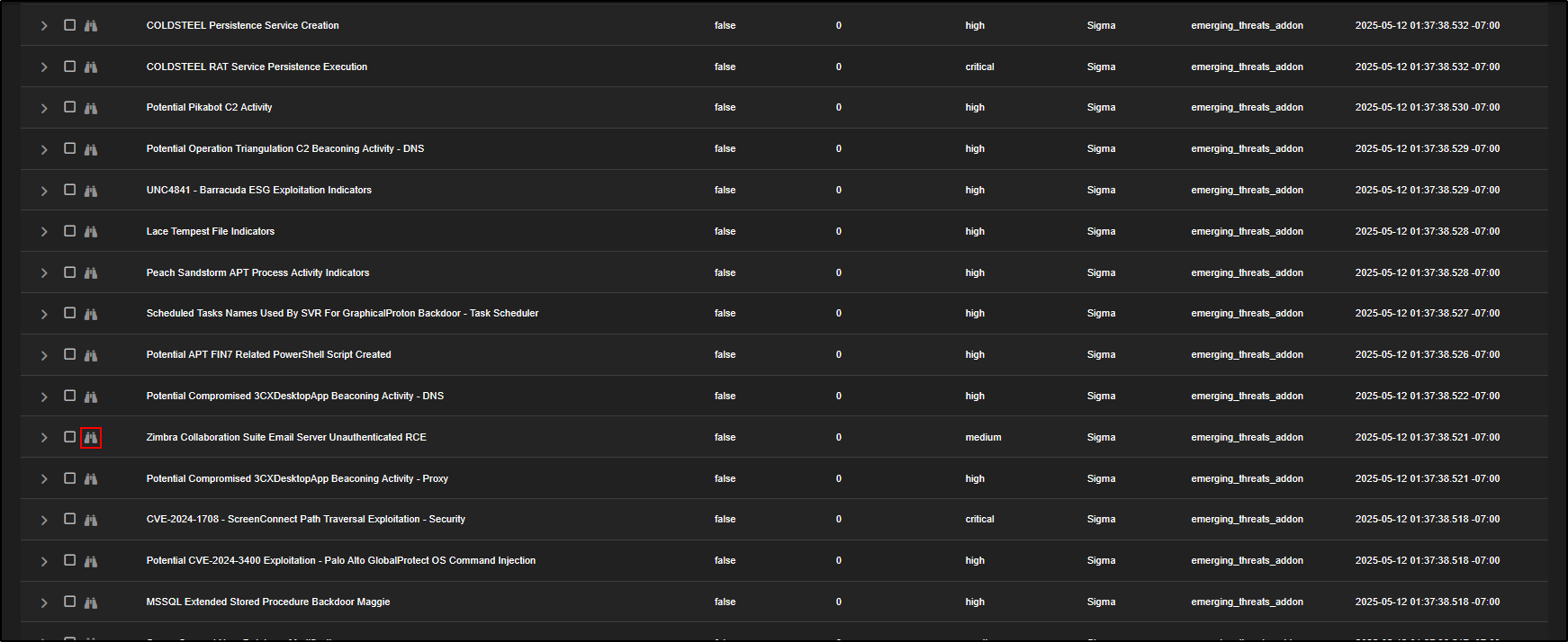 To inspect a rule more closely, click the binoculars icon next to its name.