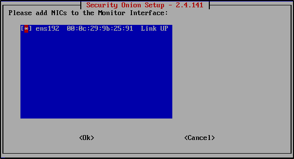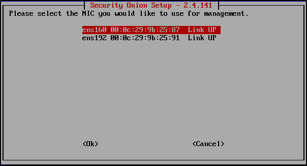 Choose the network adapter that connects to your LAN or firewall. In this example, it is ens160.