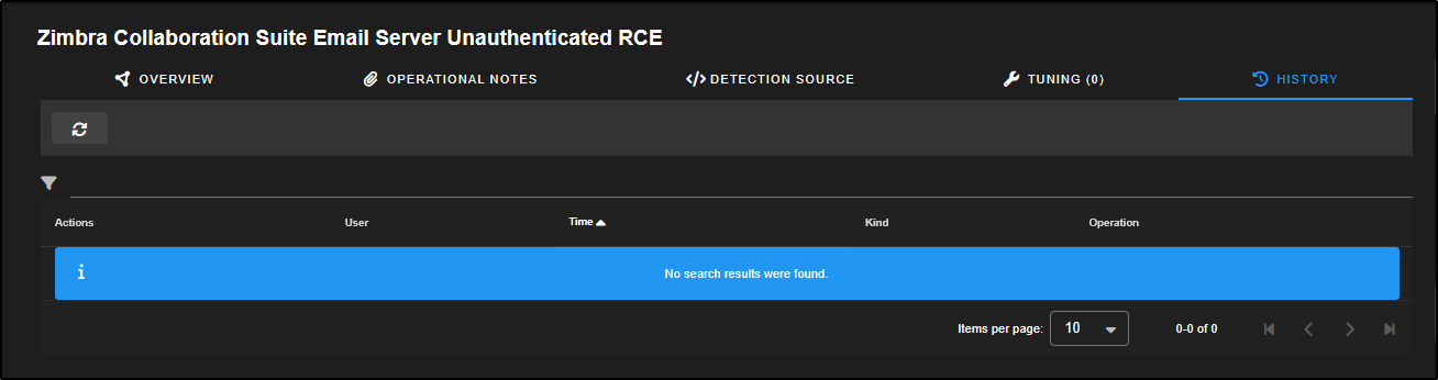 The History tab gives you a full audit trail of any changes made to the rule since it was first brought into your Security Onion setup.