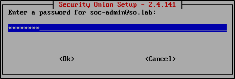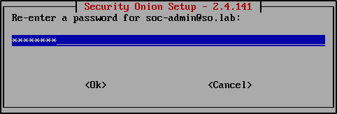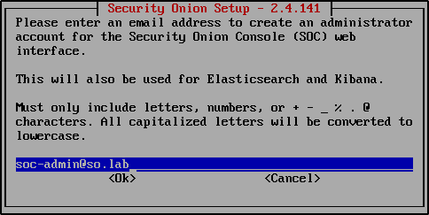 Create an administrator account in email address format for the Security Onion Console (SOC) web interface. It can be a made up email address. Take a note of this email address.