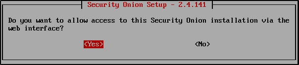 Select Yes to allow access to this Security Onion installation via the web interface.