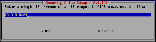 Enter the 10.0.0.0/24 to allow access from this subnet. Note your network setup may be different so verify your subnet.