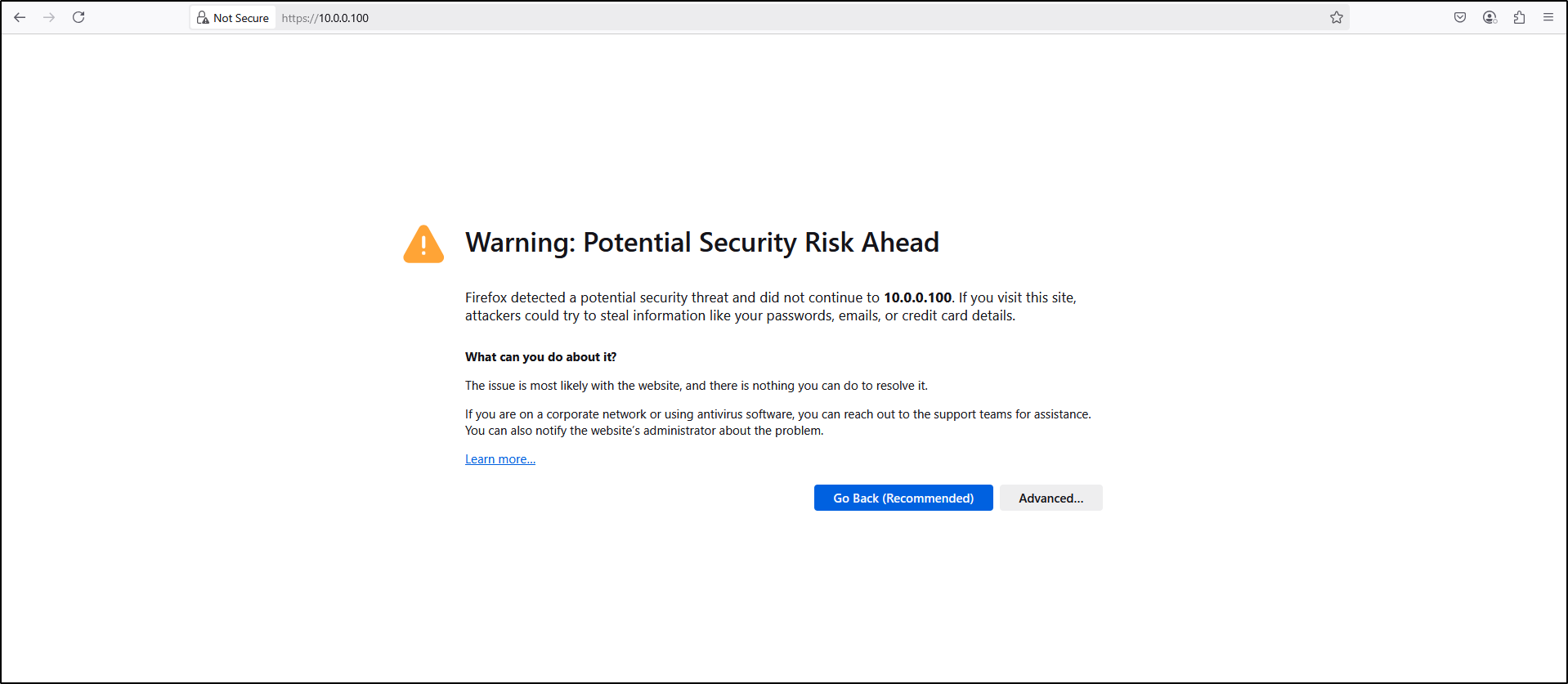 From the WS2019 VM, open a web browser and navigate to https://10.0.0.100