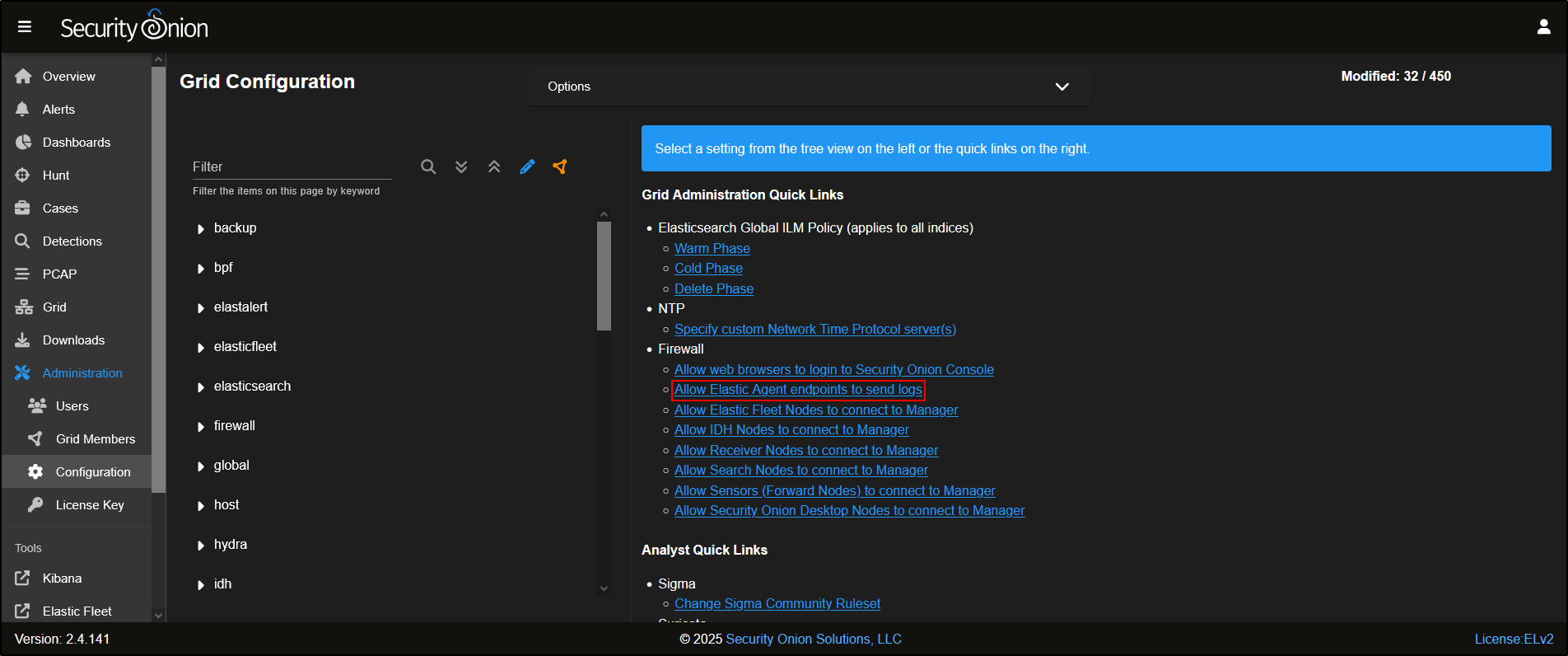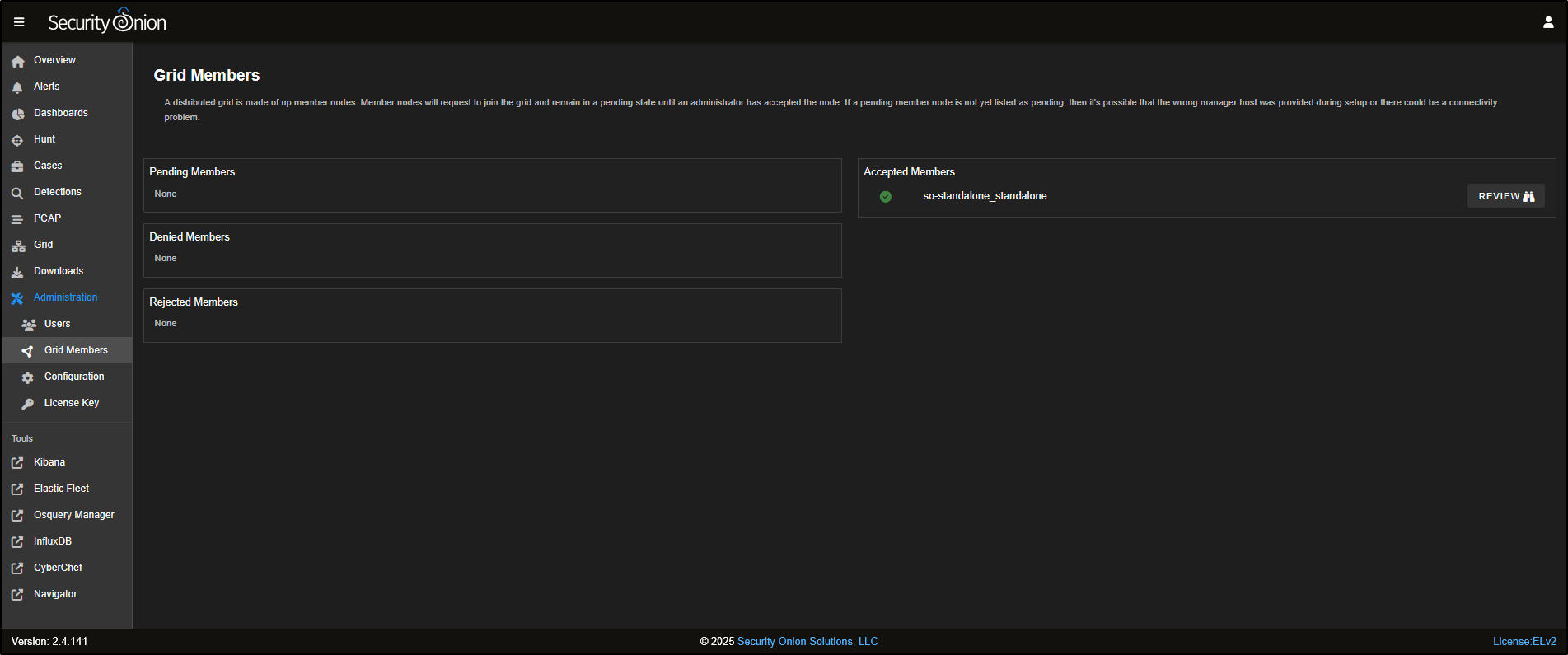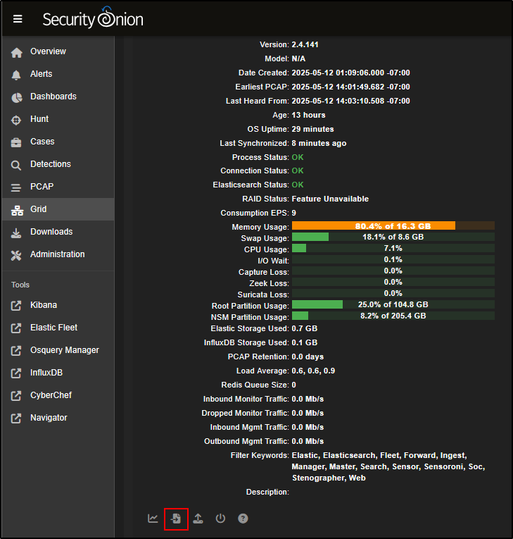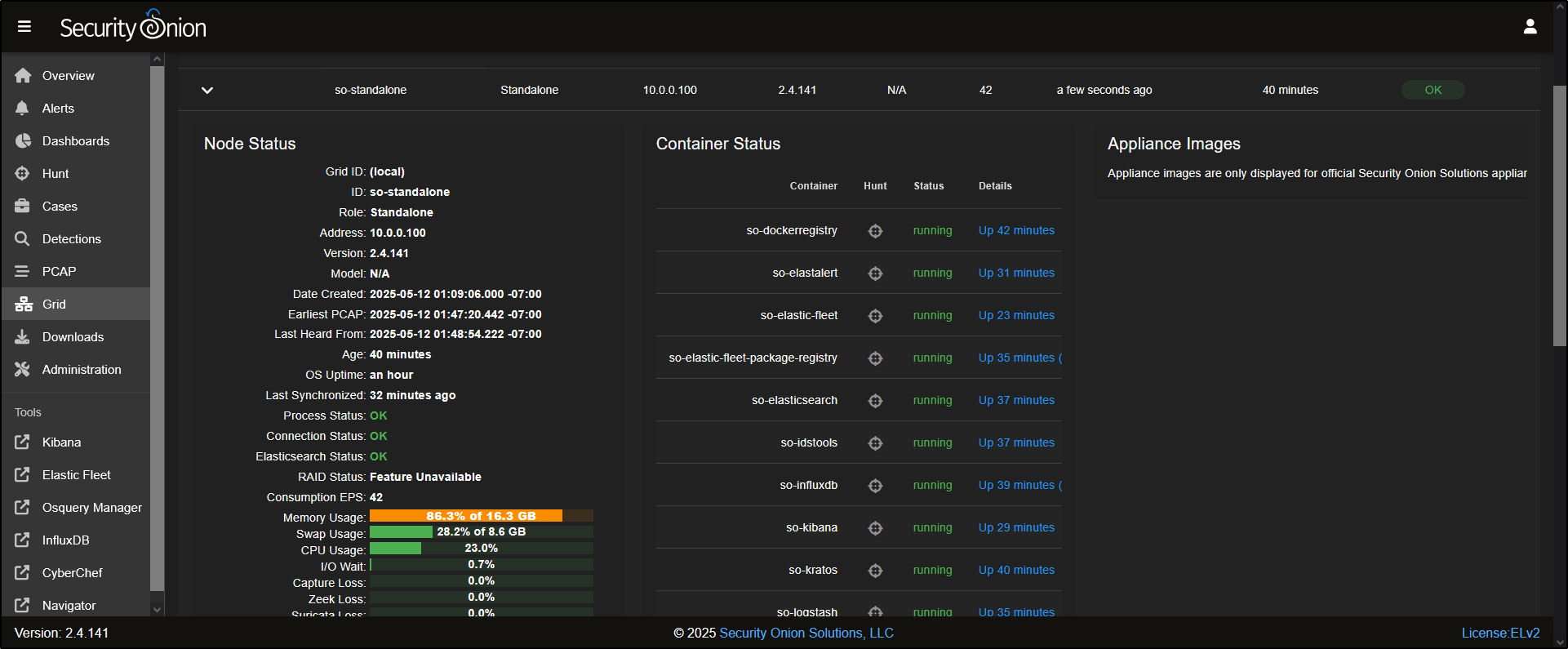 Navigate to Grid page and verify that all containers are running on the Security Onion Manager.