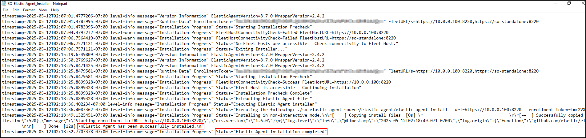 You should see Elastic Agent has been successfully installed and Elastic Agent Installation completed.