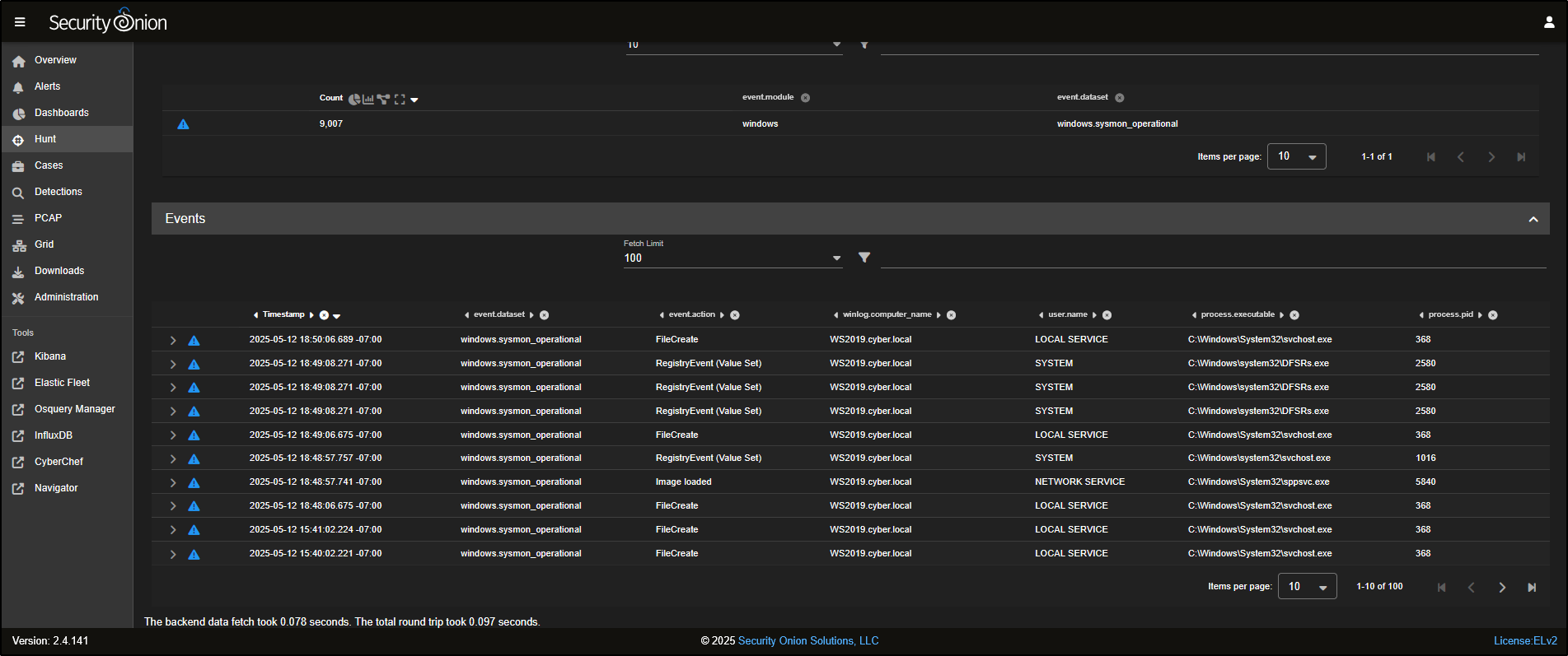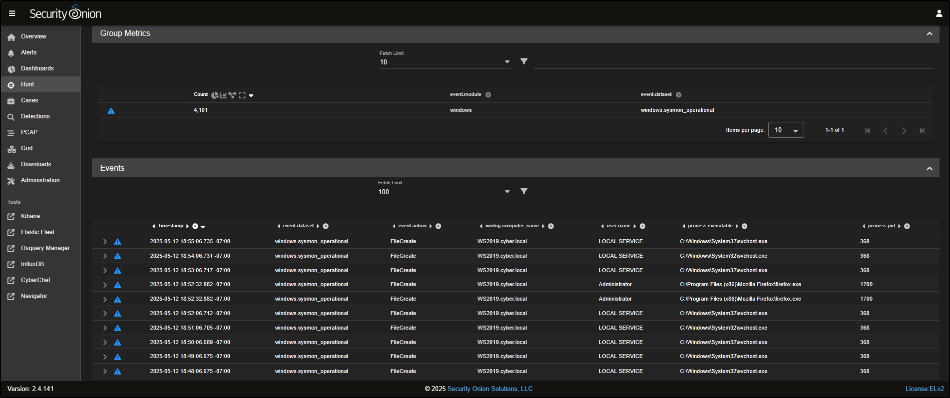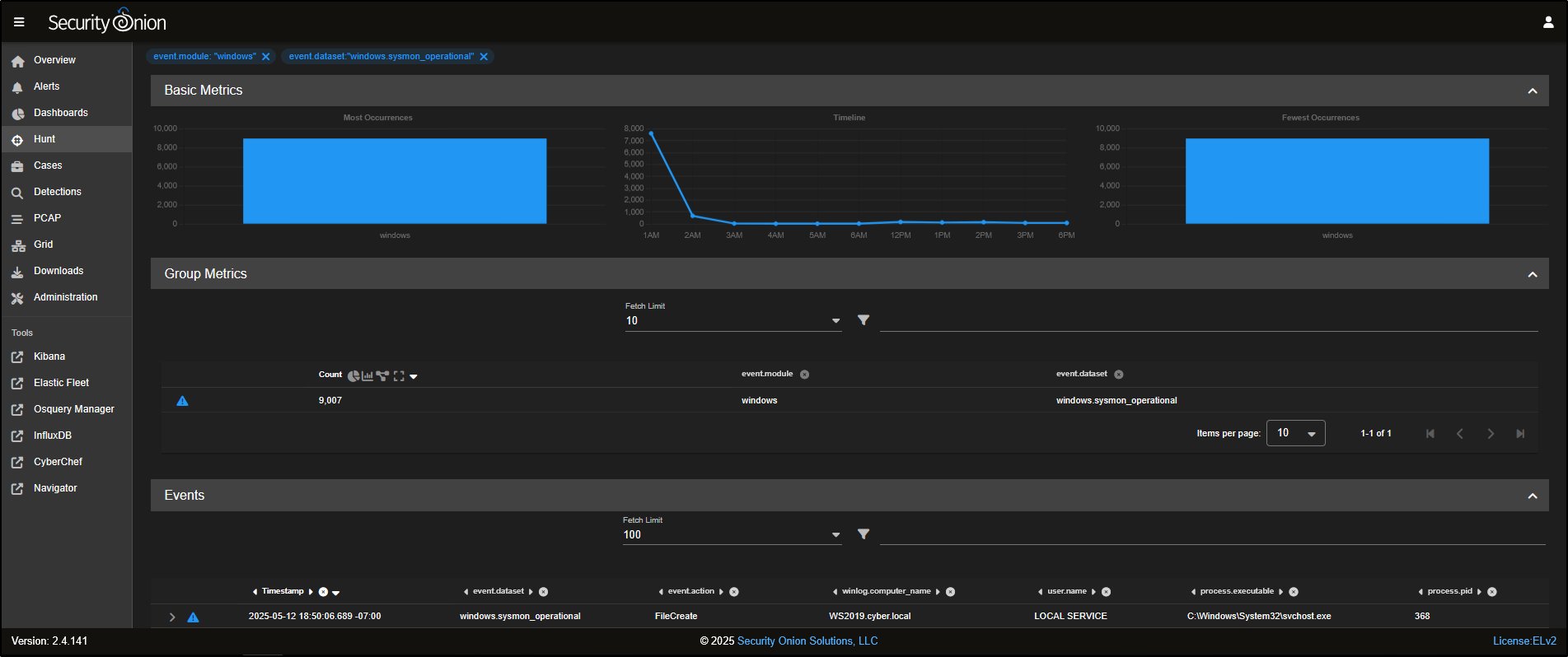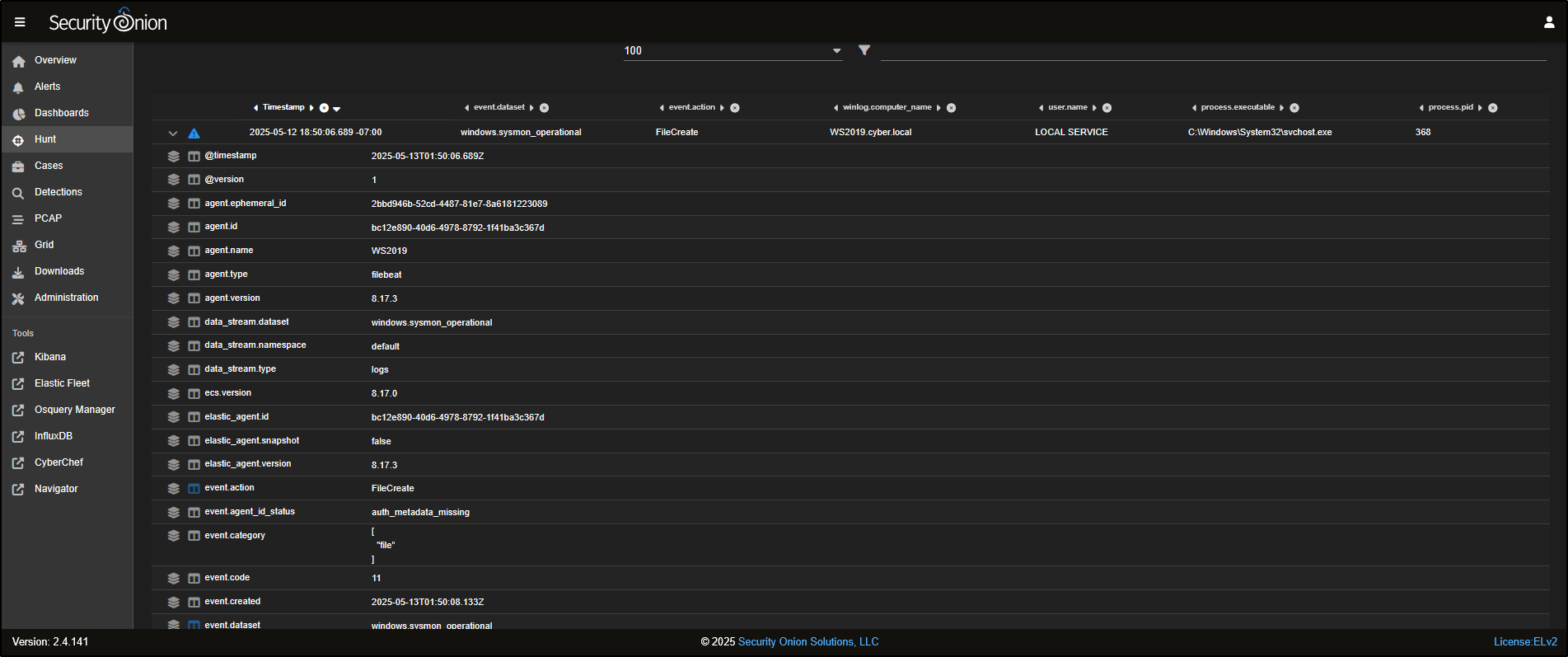 In this proof of concept, Security Onion was installed in Standalone mode, and the Elastic Agent was installed on the Windows virtual machine (VM). Test data was ingested, and threat hunting was carried out in a safe, controlled environment.