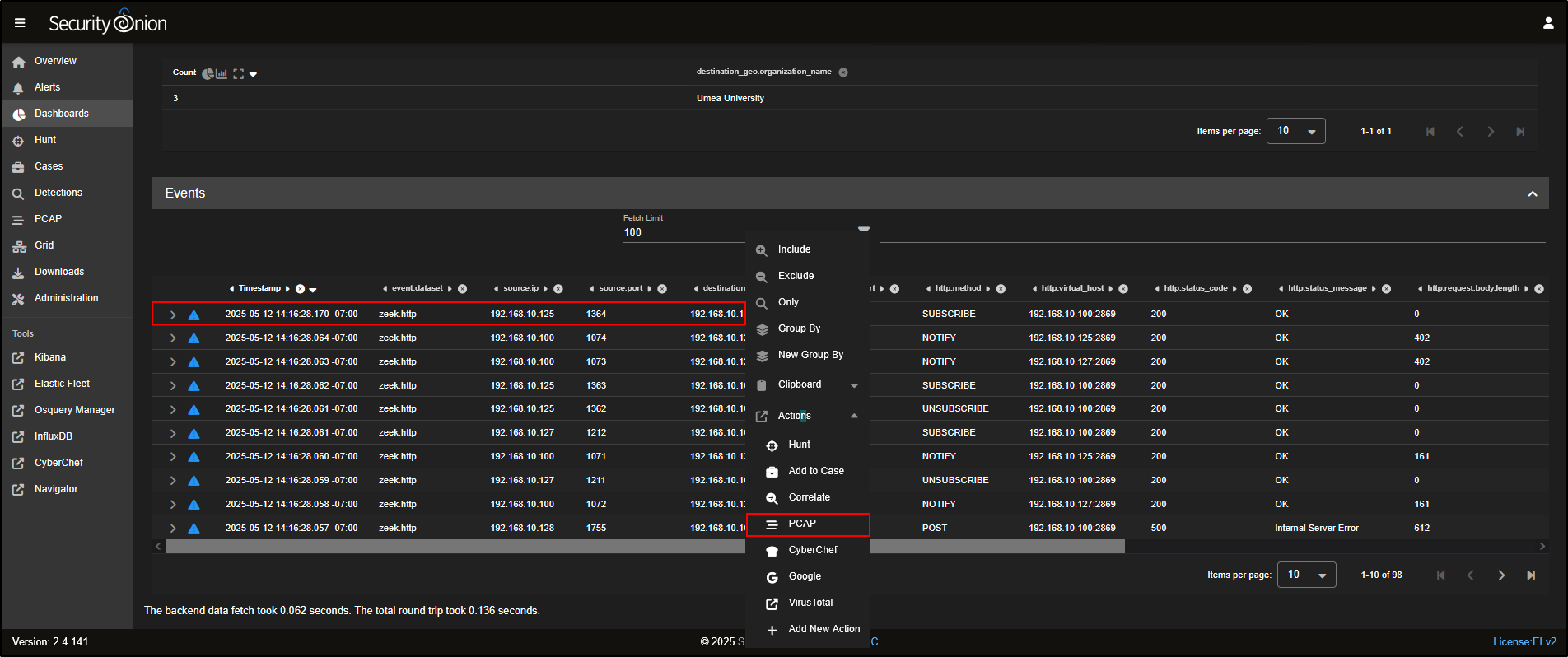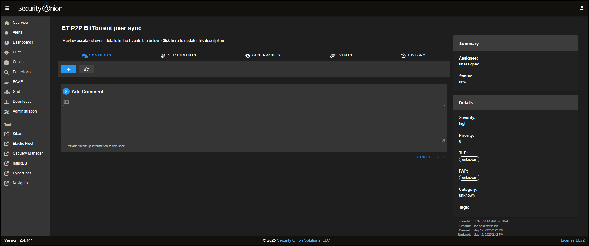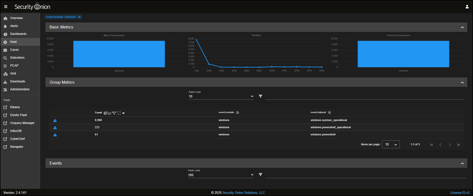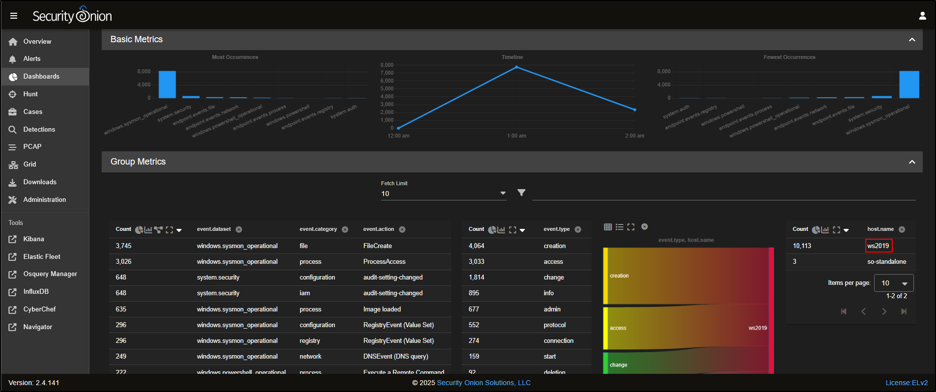 In this proof of concept, Security Onion was installed in Standalone mode, and the Elastic Agent was installed on the Windows virtual machine (VM). Test data was ingested, and threat hunting was carried out in a safe, controlled environment.